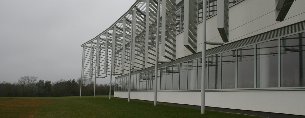 Zefyr designed, manufactured and installed bespoke powder coated aluminium solar shading (brise soleil) with aerofoil fins for Kier on the Eureka Business Park project in Ashford