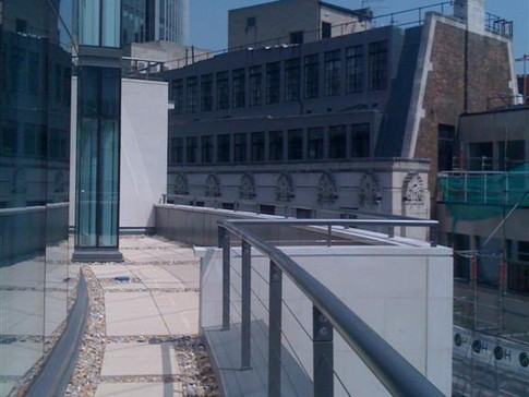 Zefyr designed, manufactured and installed powder coated aluminium balustrade and gates, coping flashing, louvres and louvre doors for EAG on the Lime Street project in London.